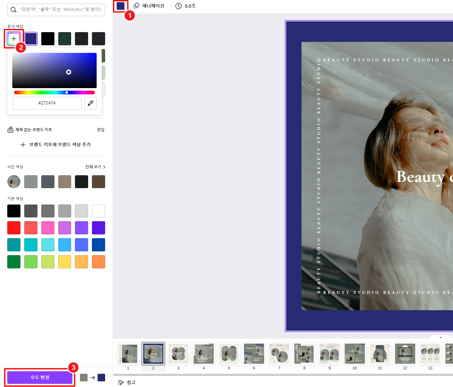 오늘은 캔바에서 색상, 글자를 한 번에 변경하는 방법을 알려드릴게요.